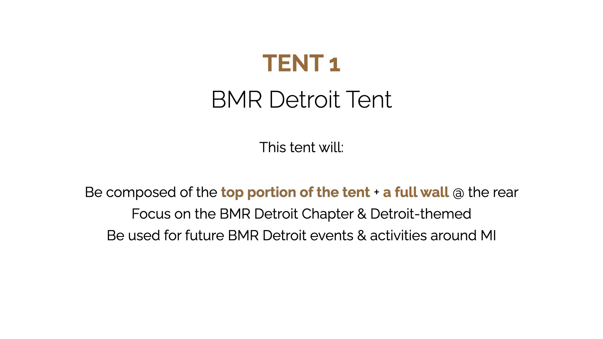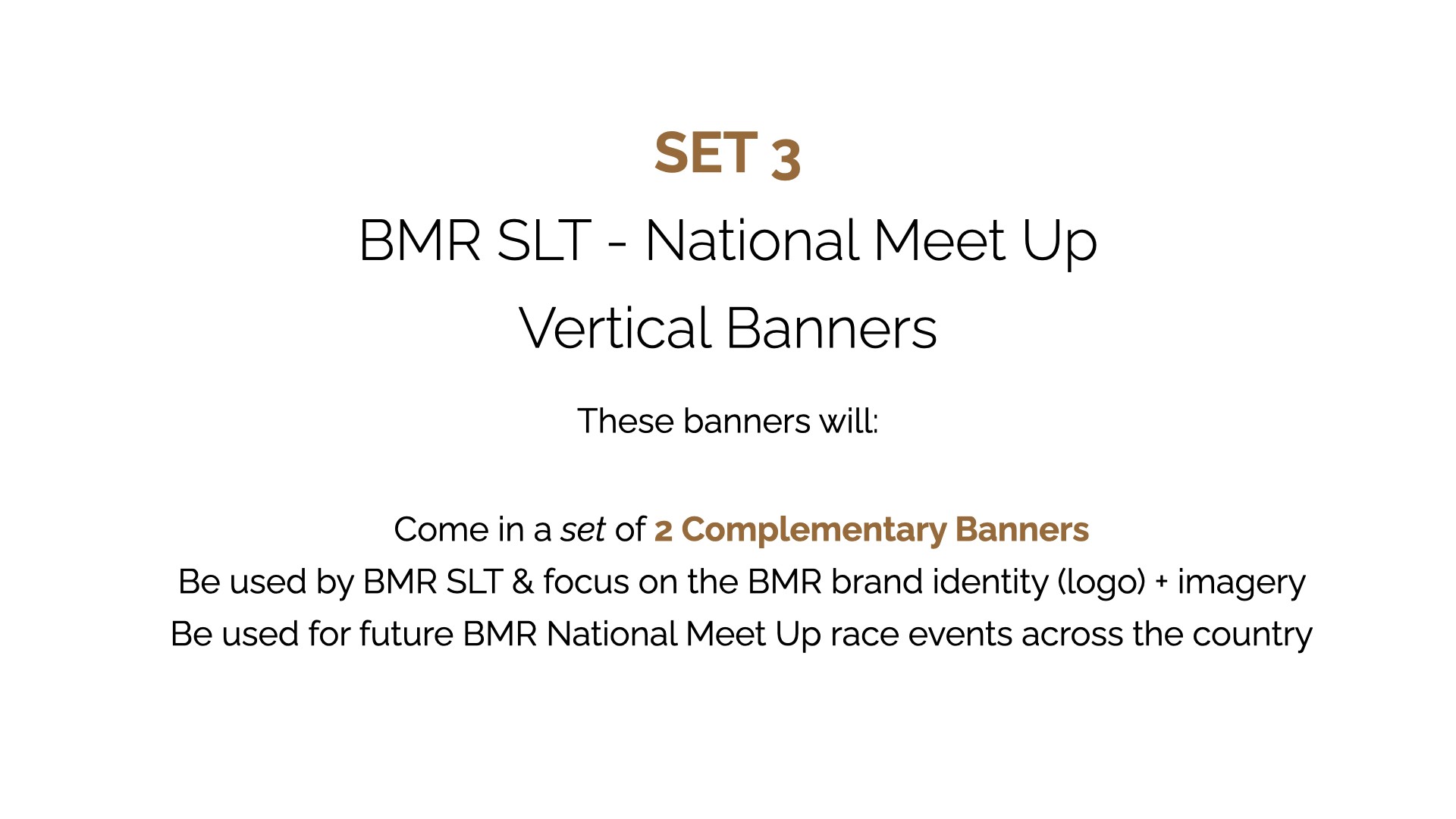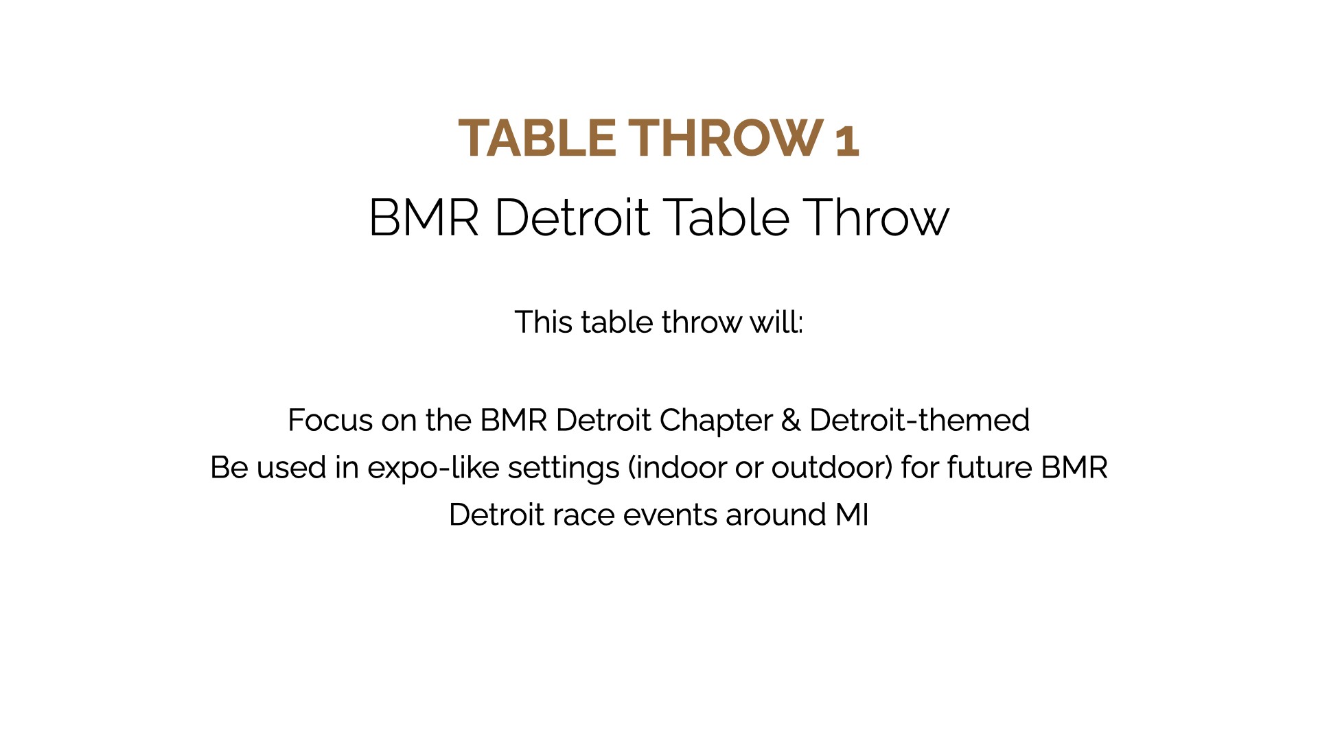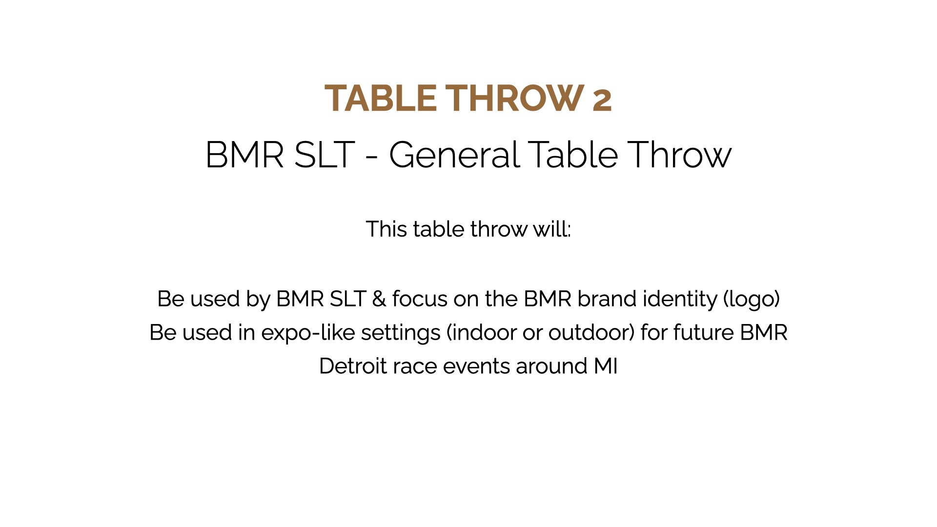 Black Men Run Inc. (BMR) is an independent running group focused on promoting a healthy lifestyle among African-American males through participating in recreational running activities. The primary goal of this project was to create designs for six vertical banners, two tents, and 2 table throws to be used amongst the national chapter and BMR Detroit chapter. The project started in the sketching phase for requested items, progressed to the revision phase, and finished with the final physical compositions.